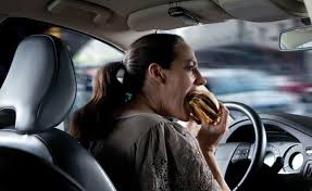 Study: 60 per cent of people read texts on their mobile phones while driving, and 88 per cent eat, drink or smoke behind the wheel. And most motorists – as many as 92 per cent – admit they are not even thinking about driving as they hit the road.