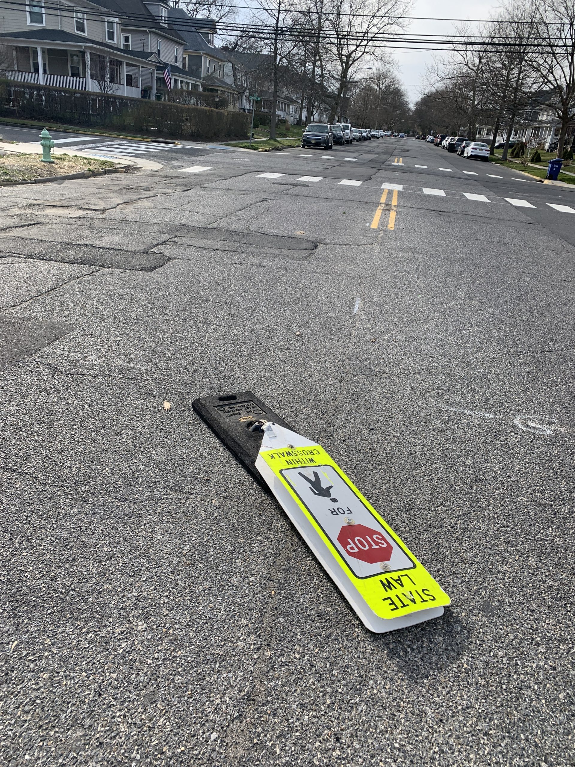 We’ve been urging people to get out of their cars for years. Right now when our physical, emotional, and mental health are at risk it would be a great time to consider opening streets to walkers, bicycle riders, and any other modes of transportation that would enable people to get around and get fresh air and exercise.  We can walk, jog, roll around our towns with 6′ between us, smile and wave, and remain a community.  We can prioritize people over cars right now.  **This photo is of a dead bollard at the corner in front of my house. It’s an intersection that kids use every everyday for school, and now for breakfast and lunch. Someone ran over it, then later another driver ran over it again and dragged it down the block. Let’s make streets for people NOW.